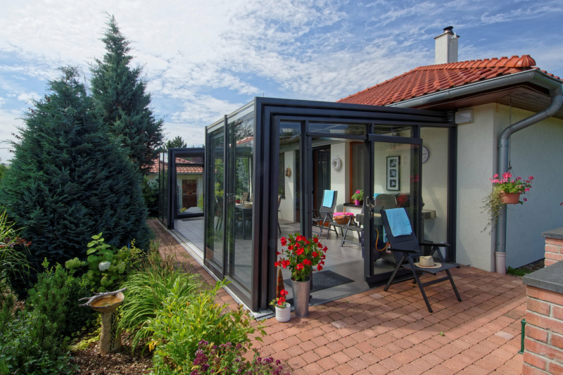 Zasklenie terasy a predzahrádok, riešenie sedenia, či zimná záhrada, mobilná podľa počasia. Nové zastrešenie v sebe spája moderné materiály, jedinečný dizajn a ľahkosť posúvania.