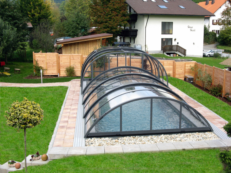 Jedná sa o konštrukcie kombinované z 2-3 štandartných typov zastrešení, zahrňujúcich ochrannú funkciu bazénu s priestorným vchodovým segmentom alebo klasický predĺžený tvar s polokopulou a mnoho ďalších možností. Najobľúbenejšie je zlúčenie nízkych segmentov s jedným alebo dvomi vyššími.