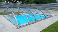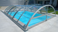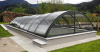 Oblúkové zakrytie bazéna v oblúkovom štýle, s plným alebo viacstenným polykarbonátovým zasklením. Naše patentom chránené profily majú zaoblené hrany a rohové body pre prípad, že by sa predišlo nehode. Výška sa mení v rozmedzí 1,10 - 2,15 m v závislosti od šírky.