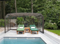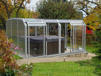 Steny sú vždy vyrobené z kompaktného polykarbonátu, zatiaľ čo strecha pozostáva z jednokomorového alebo trojkomorového polykarbonátu. Z terasy domu alebo z okna je cez priehľadný polykarbonát vidieť do bazénu alebo do záhrady.