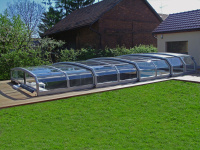 Toto riešenie oceníte v prípade, že nechcete montážne zasahovať do bezprostredného okolia bazénu. Excelentná konštrukcia vyplnená kompletne alebo čiastočne kompaktným poly-karbonátom, na pohľad ako sklo. Bočné steny zastrešenia sú vždy vyrobené z ohnutého kompaktného poly-karbonátu, zatiaľ čo strecha môže byť z jednokomorového alebo trojkomorového poly-karbonátu. Z terasy alebo okna domu je vďaka priehľadnému poly-karbonátu umožnený výhľad na záhradu alebo dno bazénu. Svojimi ostatnými vlastnosťami je model zastrešenia Riviera zhodný s modelom Oceanic. Segmenty zastrešenia sú posúvané priamo po rovnej dlažbe.