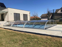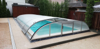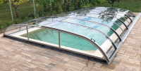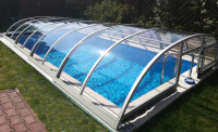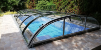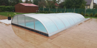 Košové zakrytie bazéna v oblúkovom štýle, s plným alebo viacstenným polykarbonátovým zasklením. Naše patentom chránené profily majú zaoblené hrany a rohové body pre prípad, že by sa predišlo nehode. Výška sa mení v rozmedzí 0,65 - 1,10 m v závislosti od šírky.