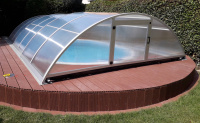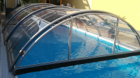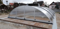 Oblúkové zakrytie bazéna v oblúkovom štýle, s plným alebo viacstenným polykarbonátovým zasklením. Naše patentom chránené profily majú zaoblené hrany a rohové body pre prípad, že by sa predišlo nehode. Výška sa mení v rozmedzí 1,10 - 2,15 m v závislosti od šírky.