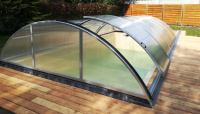 Najúspornejšie riešenie polykarbonátového zasklenia, ktoré neumožňuje zvedavým očiam nahliadnuť do bazéna a má vynikajúcu tepelnú izoláciu.