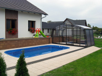 Konštrukcia hliníkových profilov je najviac dimenzovaná zo všetkých modelov zastrešenia bazénov.
