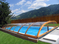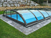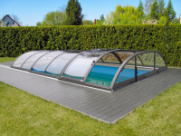 Zastrešenie bazénov Elegant NEO poskytuje komfort pri plávaní vďaka optimálnej klenbe aj v zakrytom stave. Navyše ničím nenarúša ráz záhrady.