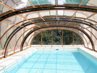 - čelné steny zastrešenia vnútorné, fixné, vyrobené z polykarbonátu a hliníkových profilov