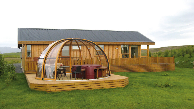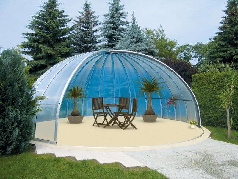 Odľahčená konštrukcia z úzkych segmentov dovoľuje široké otvorenie do voľného priestoru a to až do samého vrcholu kopuly. Vnútorný priestor sa tak môže úplne otvoriť teplým slnečným lúčom a stáť sa len nenápadnou zástenou chrániacou pred vetrom. Výborne poslúži ako vonkajší bar u bazéna, VIP pavilón v klubovni golfového ihriska, hudobný pavilom, alebo ako menšia útuľná kaviareň.