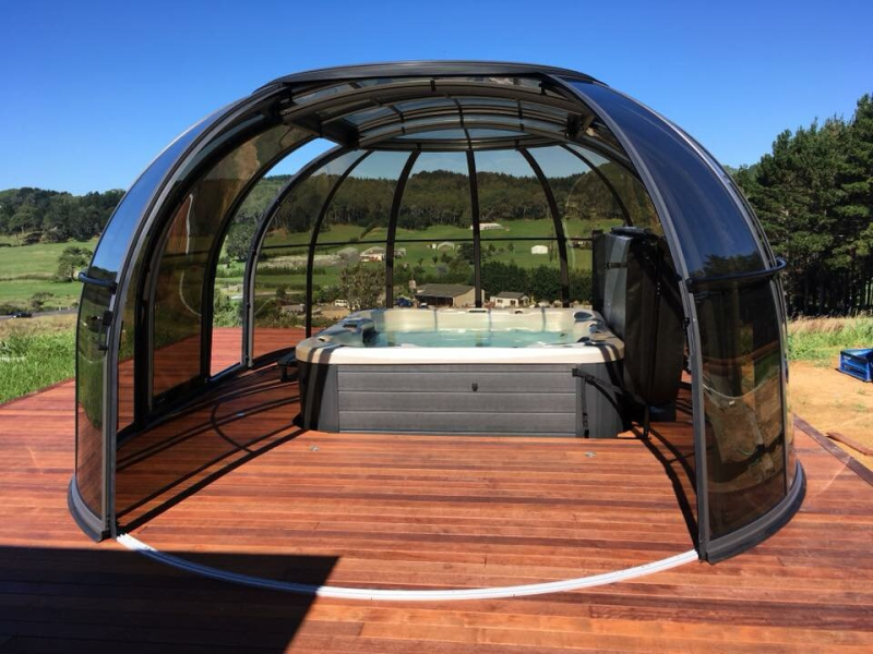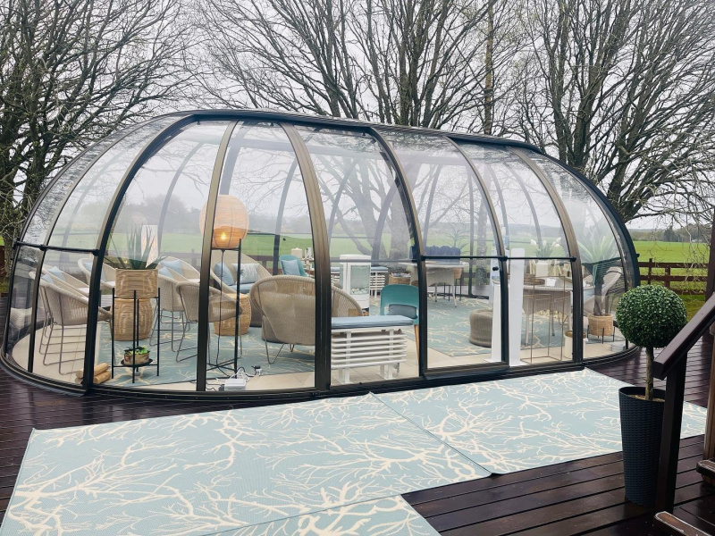 Model ponúka širokú variabiltiu otváravých plôch a použitia. Otvárať je možné polkruhové čelo, posuvné dvere môžu byť v bočných stenách a pre jednoduché vetranie je veľmi praktický i posuvný vrchlík. Paleta použitia je neobyčajne široká napr. od priestranejšieho záhradného salónika až po vonkajšiu jedáleň použiteľnú od jary do jesene...